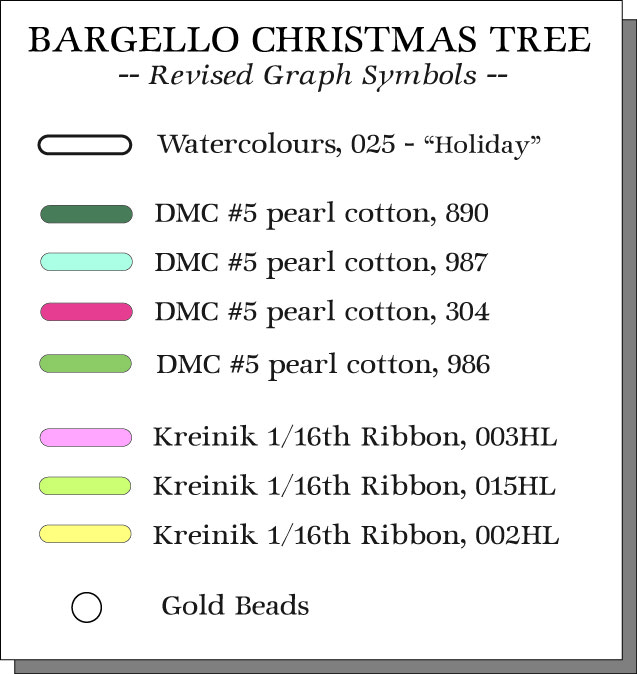 The four different ribbon patterns are built up with a combination of stitches. Here's a closeup of two of the ribbons: