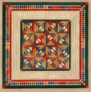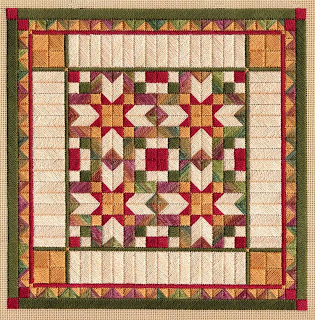 I really enjoyed working this geometric quilt design. It was very relaxing, with easy stitches, yet challenging enough with all the elements changing directions to create interesting light effects. Here's a close-up: